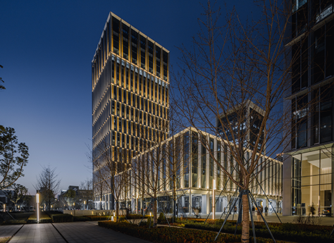 杭州海威中心位于浙江省杭州市滨江区滨康路101号,定位为面向未来信息产业、更新城市发展面貌的一流高科技商务中心。磊飞以城市更新、元素互联为基本灯光理念;同时结合地块特色,提炼计算机CPU奔腾的“芯”为设计灵感,通过灯光将建筑群串联,打造空间互联光影效果;结合灯光层次规划及序列感的营造体现新旧建筑的传承与统一。